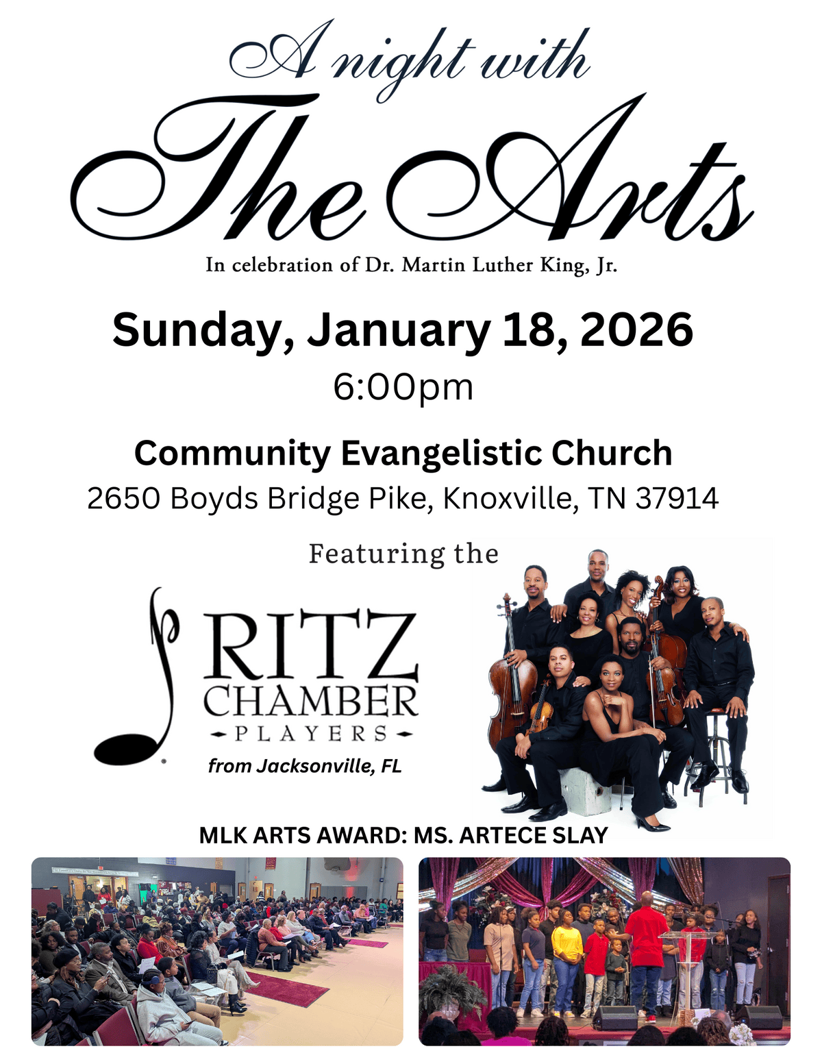 The evening will feature a special performance by the Ritz Chamber Players, a nationally recognized ensemble from Jacksonville, Florida, known for blending classical excellence with cultural storytelling.